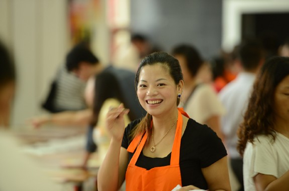 點評:橙色的圍裙配上專業的服務,潔白的牙齒配上燦爛的笑容,儼然造就了這樣一位美麗而熱情的女導購。在生活家地板南京8.25某大型地板展銷會的現場上,一位出色的女導購用最美麗的笑容感染了我們的攝影師,也溫暖了我們的消費者。