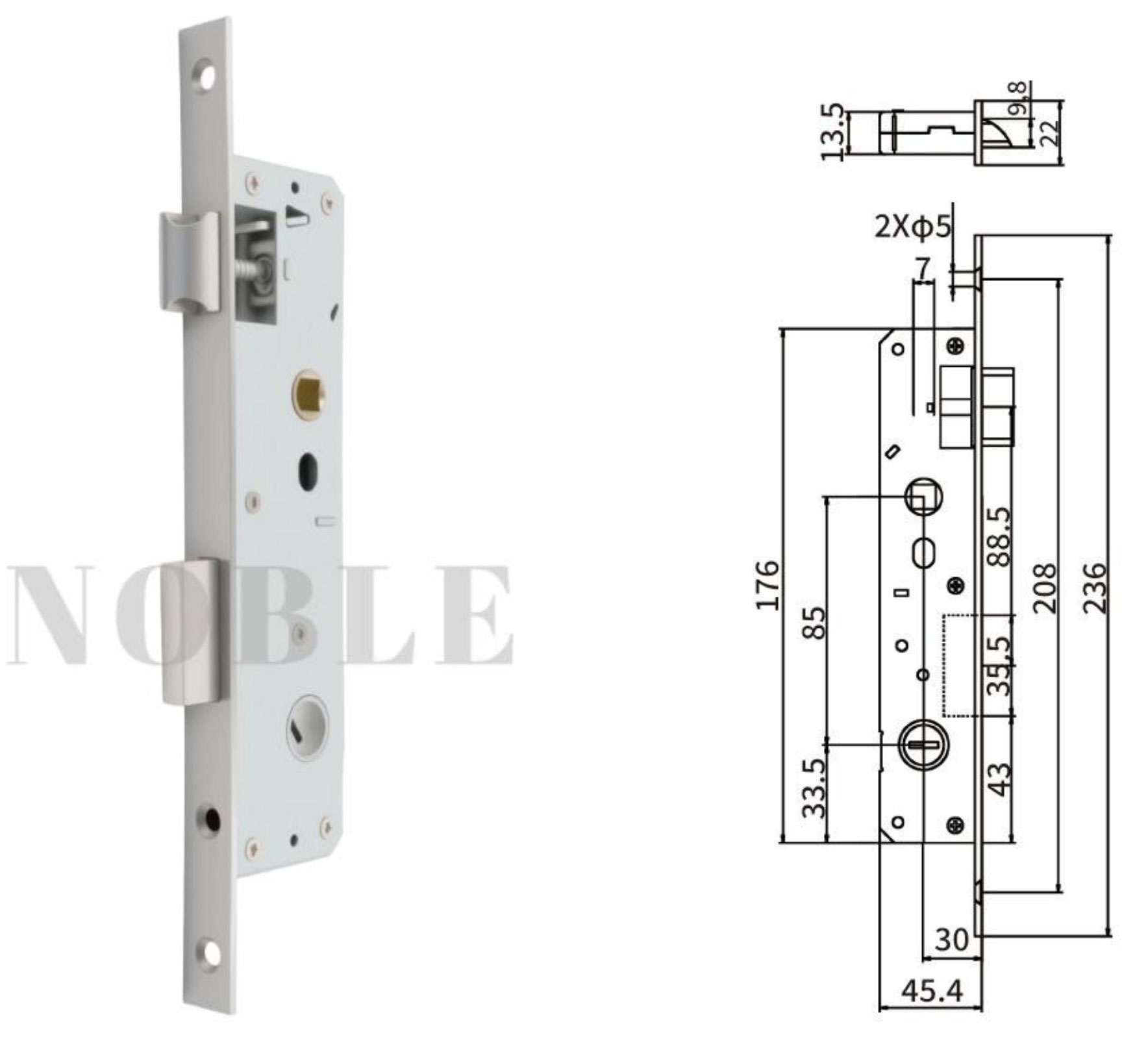 Faceplate Width(mm) Center Distance(mm) Backset(mm) Mortise Width(mm)